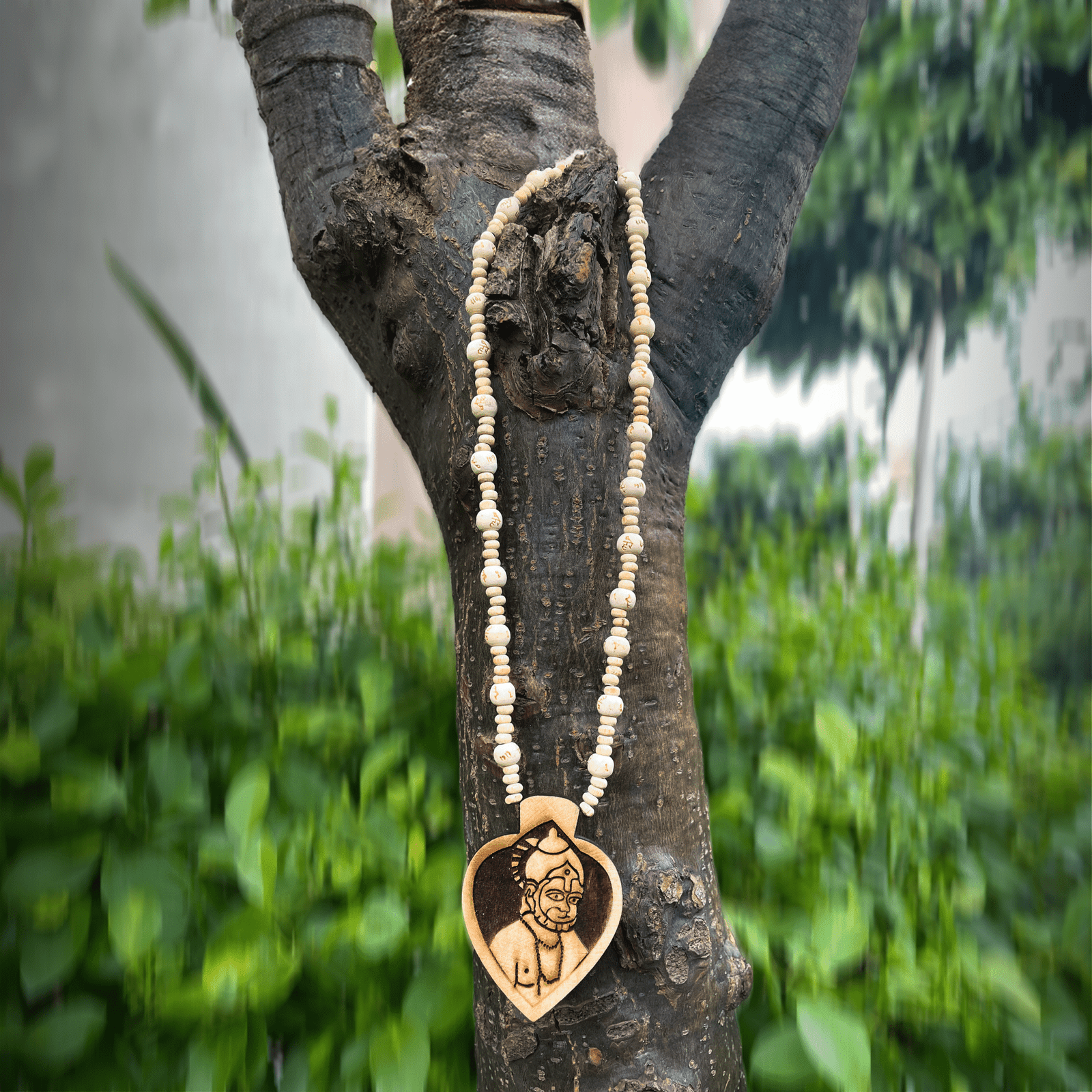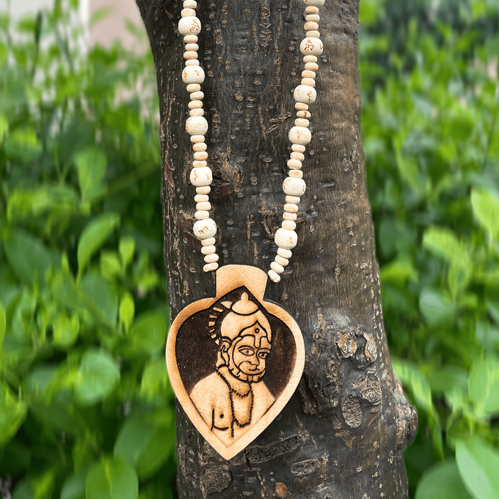 Shri Balaji Hanuman Ji Pendant (Locket) Original Tulsi Mala with Hare Ram Machine Carving Beads